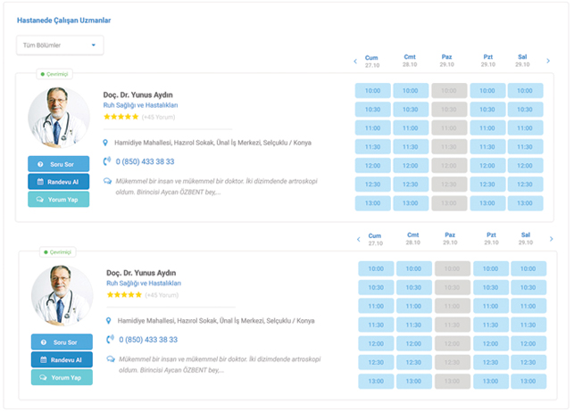 Online randevu takvimi sayesinde hastaların hastanenizde bulunan uzmanlardan günün her saati, 7/24 randevu almasını sağlayabilirsiniz…